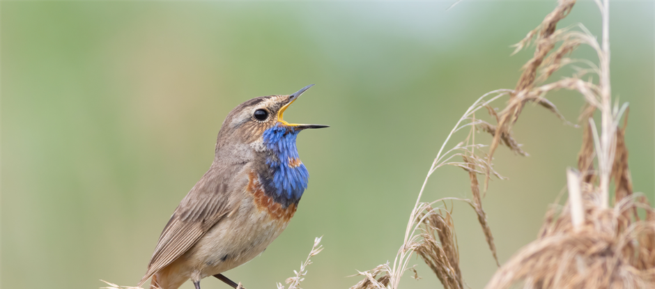 De blauwborst is niet alleen een lust voor het oog, maar ook voor het oor! Hun melodieus gezang vult de lucht tijdens de broedperiode. Het mannetje laat zijn gezang graag horen vanaf een opvallende zitplaats, zoals de hoge boomtoppen, om zo zijn territorium te markeren en potentiële partners aan te trekken.