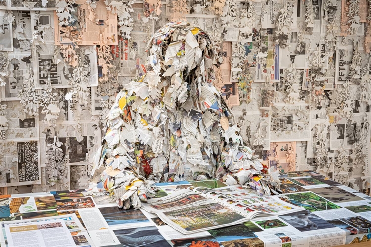 De correspondenten die het nieuws, letterlijk, verspreiden bestaan uit performers in druk ruisende pakken. Deze zijn gemaakt van krantenknipsels in de vorm van de silhouetten van de besproken bedreigde flora en fauna. ‘Ik vond het niet passend om als mens de nieuwsbladen te verspreiden,’ vertelt Janssen. ‘De pakken zijn een tussenvorm tussen mensen en niet-menselijke dieren.’ De kunstenaar verblijft graag langer op de plek die hij beschrijft, om zijn correspondentschap goed te kunnen ontplooien. ‘Als vanzelf kom je dan met andere aspecten in aanraking. Er liggen veel vormen van kennis verbogen in een landschap maar we zijn er als mensen soms blind voor geworden. Tegelijkertijd zijn er verschillende manieren om die kennis te lezen: iemand die jarenlang zijn hond op dezelfde plek uit laat valt andere dingen op dan bijvoorbeeld een ecoloog.’
