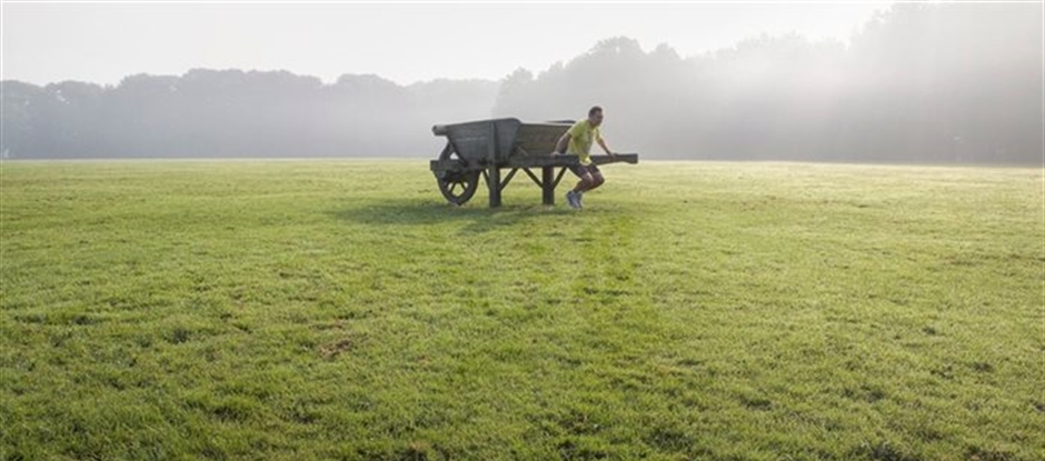 De Kruiwagen is in 1982 op de Grote Speelweide geplaatst en is toe aan een renovatie. Een kunstenaar voert dit uit. We vervangen alle planken. Daarvoor gebruiken we azobe hout. Deze harde en noestige houtsoort is ook toegepast in het oorspronkelijk ontwerp. Het weerspiegelt de noeste arbeid van de mensen die met de kruiwagens gewerkt hebben. We kiezen voor gebruikt hout, net zoals de kunstenaar deed voor het oorspronkelijk ontwerp.