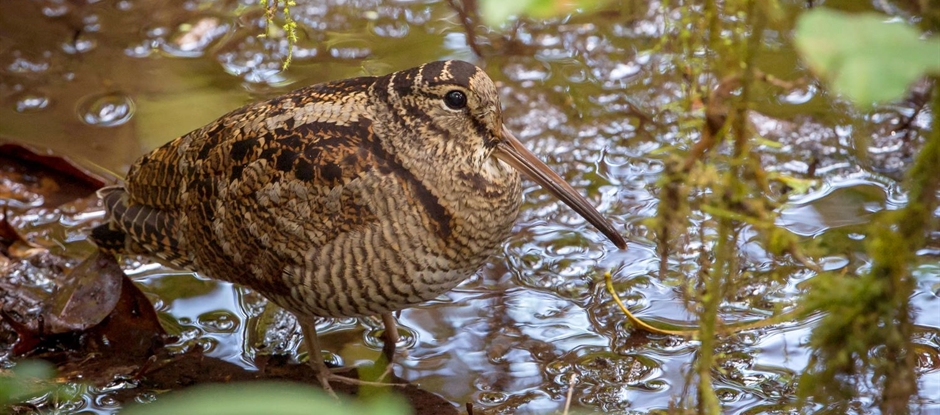 De houtsnip (Scolopax rusticola) is een schuwe, goed gecamoufleerde vogel die voorkomt in vochtige loof- en gemengde bossen met een rijke ondergroei. Zijn verenkleed, met patronen die lijken op een bosbodem bedekt met dode bladeren, biedt uitstekende camouflage in zijn natuurlijke leefomgeving.